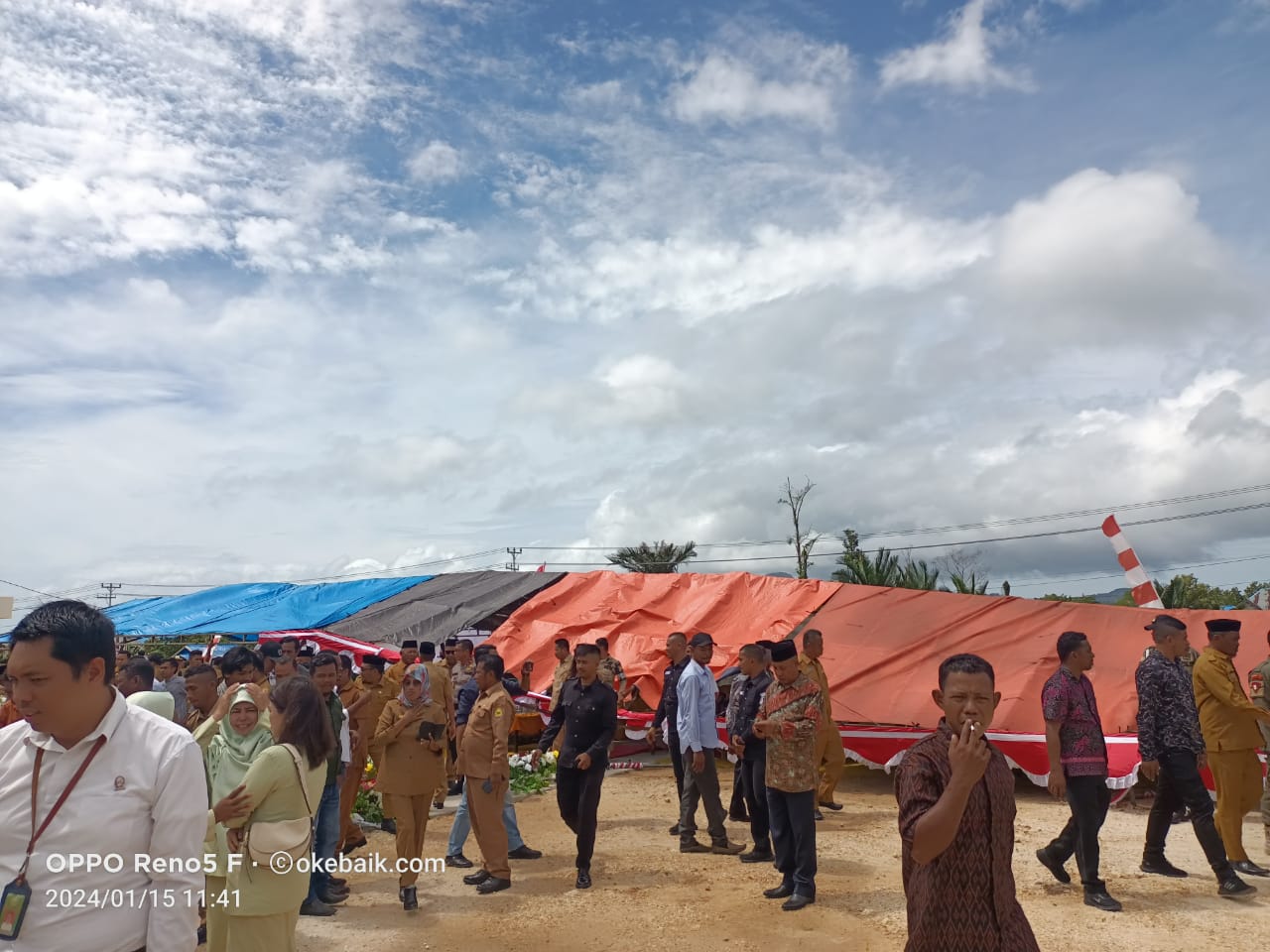 Pantau Okebaik.id, kejadian ini terjadi sekitar pukul 11.00 WIT. Saat Bupati lagi memberikan sambutan, tiba-tiba angin kencang dan merobohkan tenda yang ada sejumlah tamu undangan.