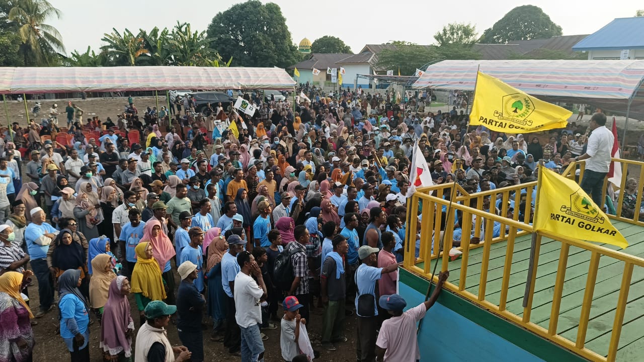 Pelantikan dan pengambilan sumpah tim kampanye yang dipusatkan di Lapangan Gelora Abdul Gafur Desa Banemo itu, membludak. Ribuan pendukung mulai dari Desa Banimo, Bobane Jaya, Bonane Indah, Moreala, Sibenpopo dan Bobane Remdi berbondong-bondong hadir