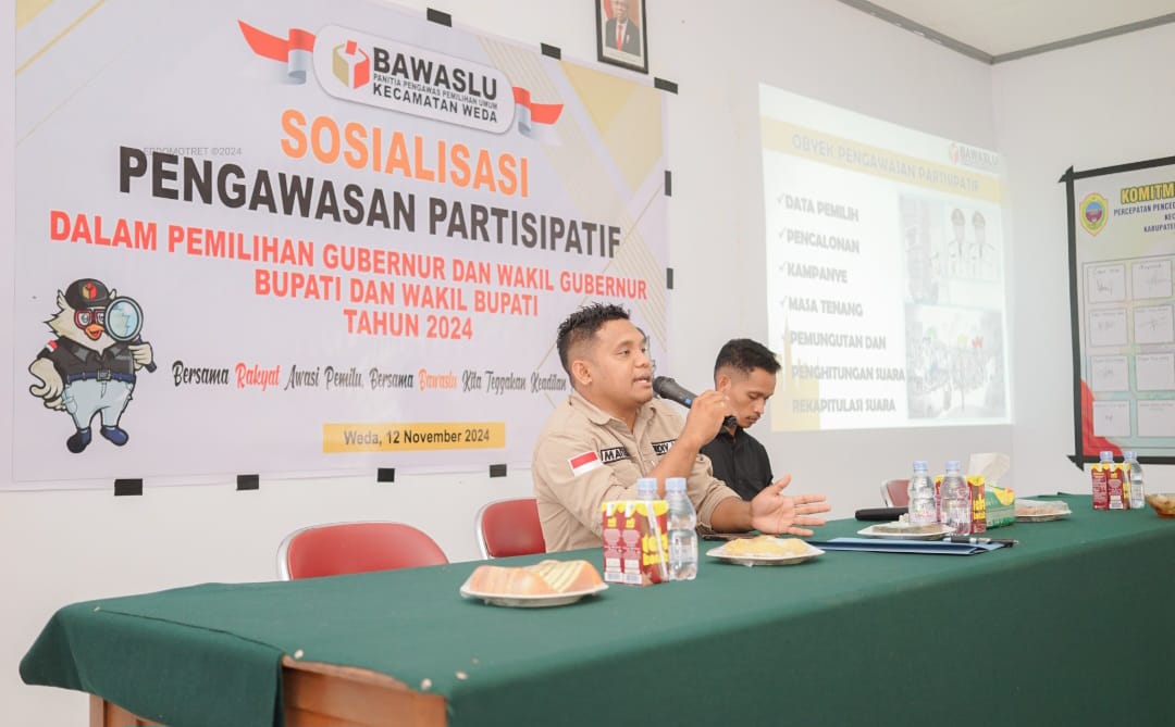 Okebaik- Panwascam Weda, Kabupaten Halmahera Tengah, Maluku Utara (Malut), menggelar sosialisasi pengawasan partisipatif dalam pemilihan gubernur dan wakil gubernur serta bupati dan wakil bupati pada Pilkada 2024.