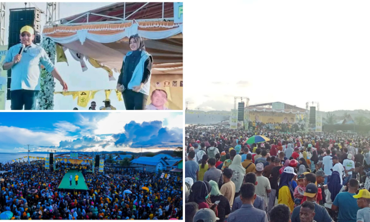 Okebaik- Kampanye terbuka pasangan calon Gubernur dan Wakil Gubernur Maluku Utara (Malut) nomor urut 2, H. Aliong Mus-Sahril Thahir (AM-SAH) dan calon Bupati dan Wakil Bupati Kepulauan Sula nomor urut 2, Fifian Adeningsi Mus dan Saleh Marasabesy (FAM-SAH), dihadiri puluhan ribu warga Sula.