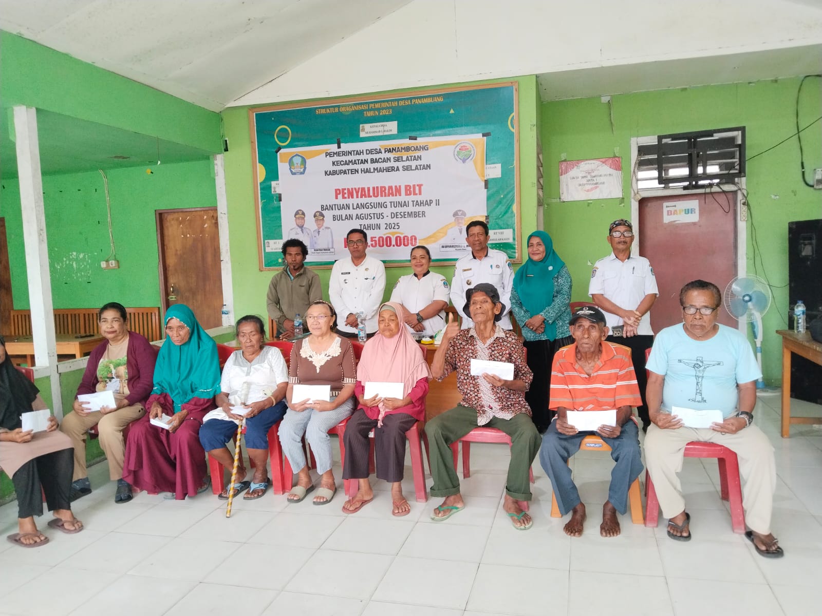 Okebaik- Pemerintah Desa (Pemdes) Panamboang, Kecamatan Bacan Selatan, Kabupaten Halmahera Selatan, (Halsel), kembali menyalurkan Bantuan Langsung Tunai (BLT) tahap II kepada warga penerima manfaat, Rabu (01/10/2025).