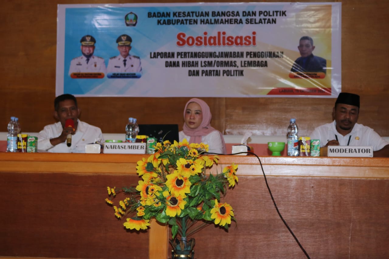 Kegiatan sosialisasi ini juga menjadi wadah komunikasi antara pemerintah daerah dan organisasi penerima hibah dalam memperkuat sinergi serta mendukung pembangunan sosial dan politik di Kabupaten Halmahera Selatan.