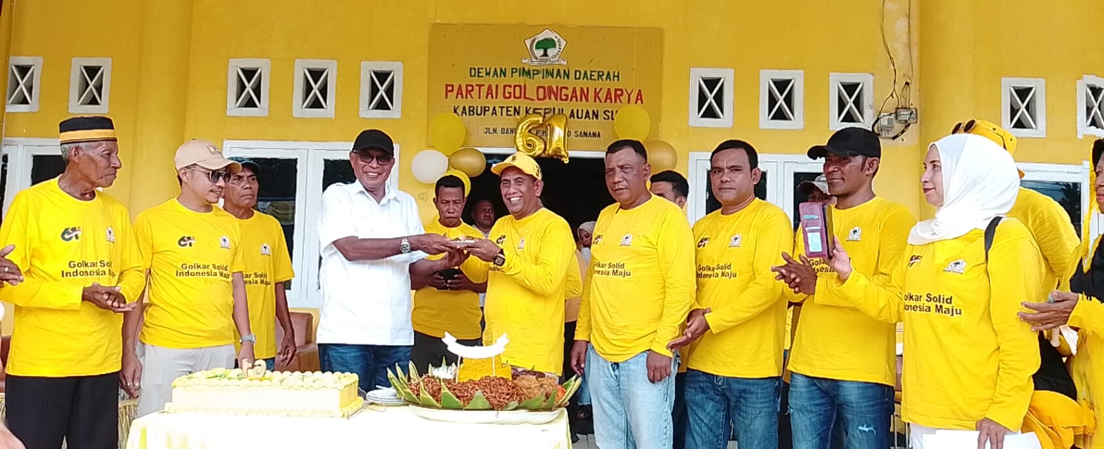 Okebaik- DPD II Partai Golkar Kabupaten Kepulauan Sula, memperingati Hari Ulang Tahun (HUT) ke-61 tahun yang berlangsung di kantor DPD Partai Golkar Sula, Desa Waihama, Kecamatan Sanana, Minggu (19/12/2025).