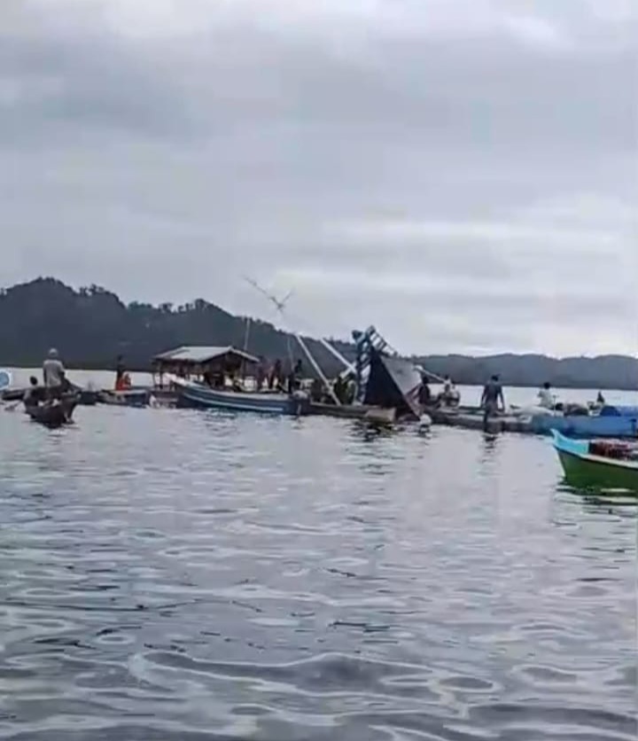Okebaik- KM Satria Sejati tenggelam di perairan Desa Pancuran, Kecamatan Taliabu Barat, Kabupaten Pulau Taliabu, Maluku Utara, Selasa (13/01/2026).